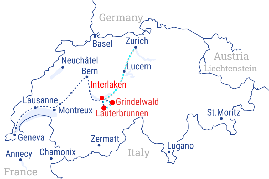 Departure from Geneva, Lausanne, Zurich, Lucern, Interlaken